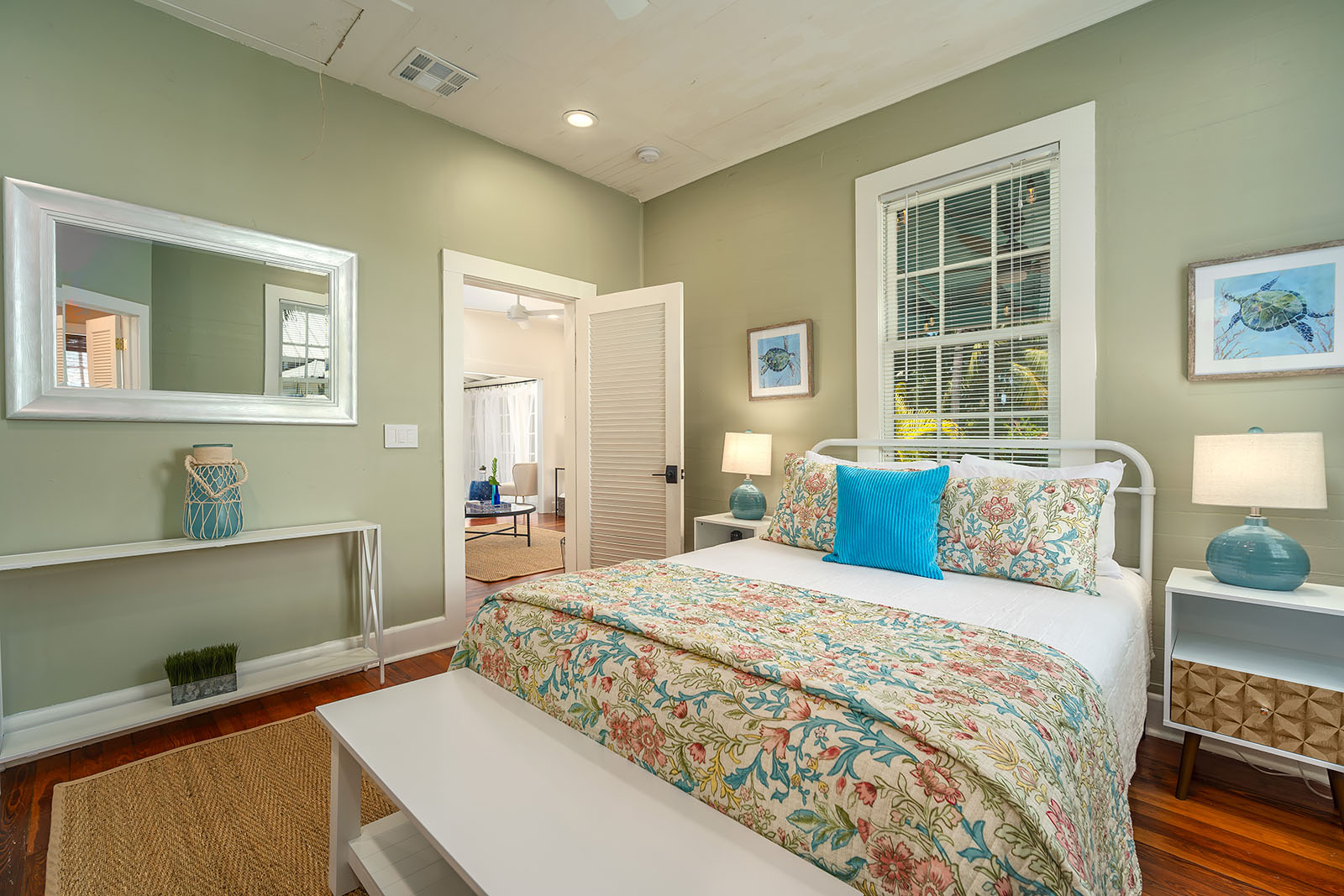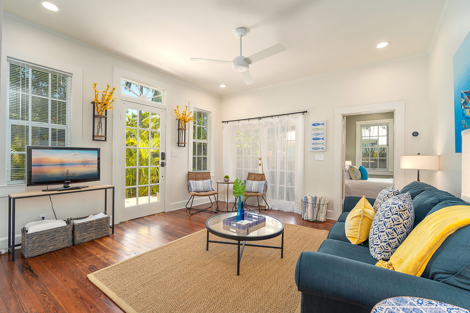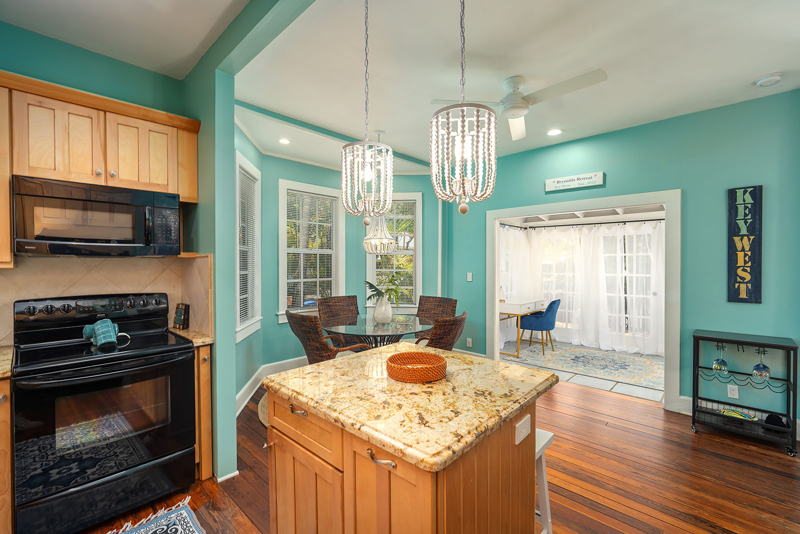 This private home features 2 Bedrooms, 2 Baths & a bonus Sunroom with desk that is just several blocks from the beach, Duval Street and Southern Most Point. Walk or bike to all the shopping, restaurants and famous sites Key West has to offer. Newly updated kitchen and bathrooms, custom cedar closets, deck, grill, updated lighting, outdoor Bluetooth speakers and more! Relax on the large, composite, wrap around deck that offers plenty of sun to work on that perfect tan or sit in the shade under the overhang with ceiling fan. The table and chairs under the overhang are a great setting for a shaded lunch or dinner surrounded by beautiful tropical foliage and Palm Trees. End your day by taking a dip in the spa with your favorite beverage after a long day.