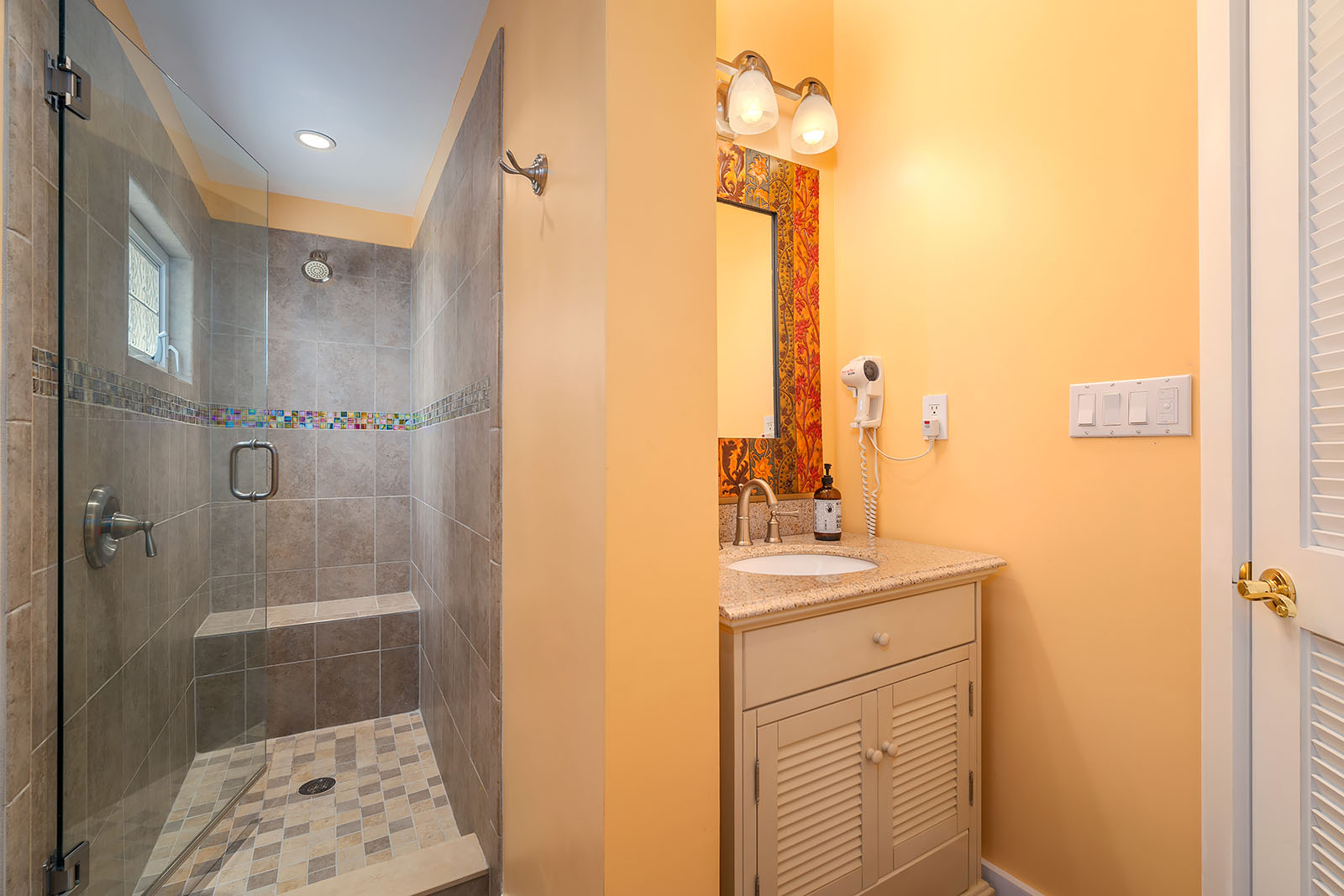 Bathrooms have roomy showers with bench